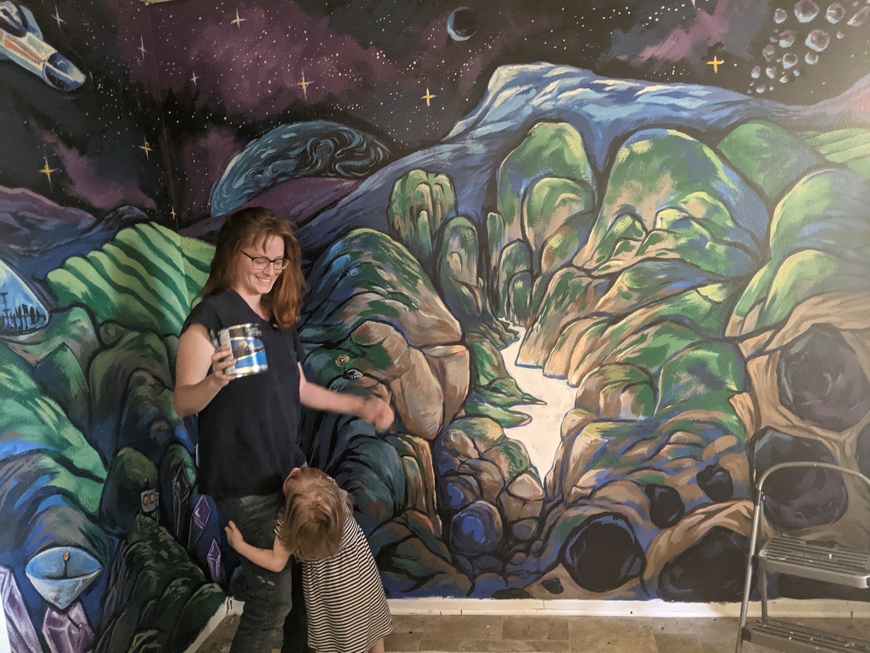 There was a time when we thought that we could put Otto in Luna’s room. We bought a bunk bed, everything was peachy. But then we realized…That we just didn’t have the will power to deal with both our kids crying and crib training and waking each other up and ALL OF THAT. So Cory built a wall and we sacrified our dining room. So then Otto had a room. So I made space for Otto. And first I thought, hey, let’s make it a mountain scene.